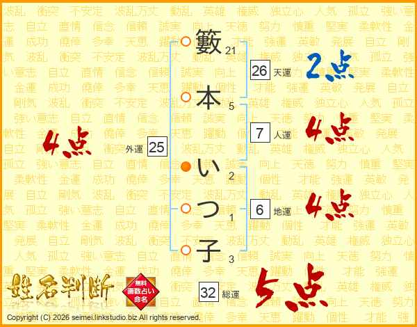 籔本いつ子さんの天運は26画の2点!