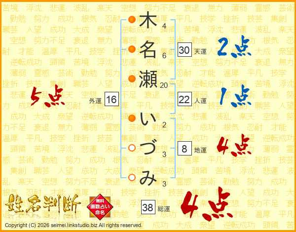 木名瀬いづみさんの天運は30画の2点!