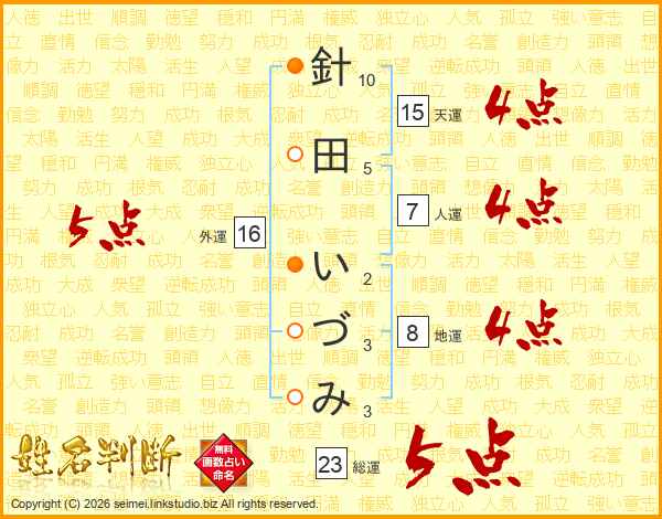 針田いづみさんの総運は23画の5点!