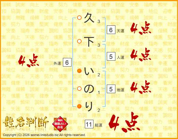 久下いのりさんの総運は11画の4点!