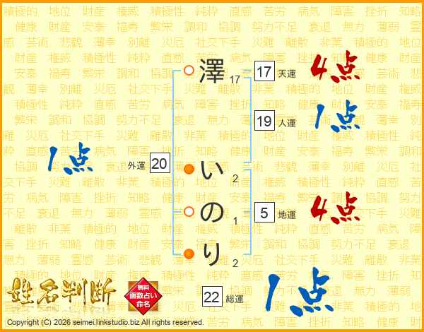 澤いのりさんの総運は22画の1点!