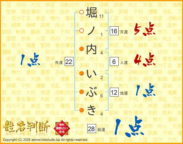 堀ノ内いぶきさんの天運は16画の5点!