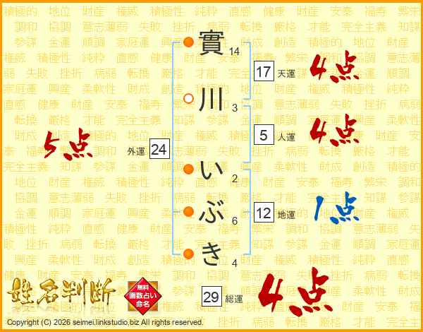 實川いぶきさんの総運は29画の4点!