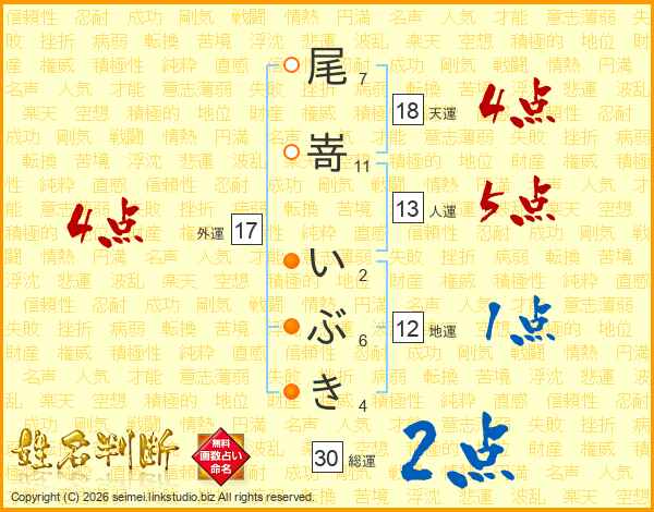 尾嵜いぶきさんの総運は30画の2点!