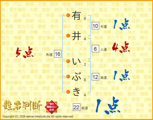 有(6画)井(4画) い(2画)ぶ(6画)き(4画)