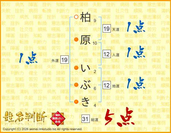 柏原いぶきさんの総運は31画の5点!