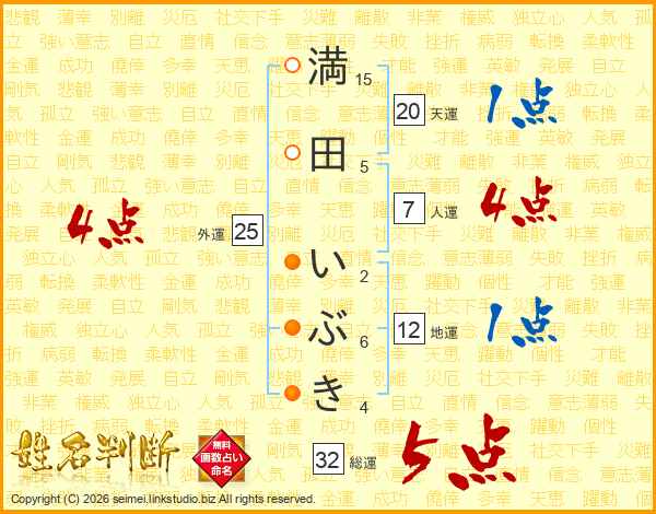 満田いぶきさんの総運は32画の5点!