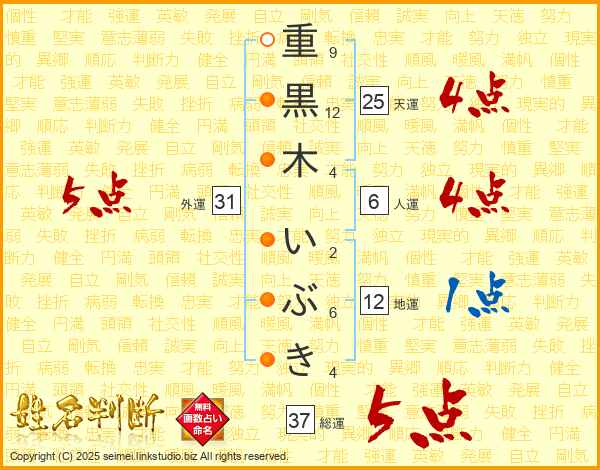 重黒木いぶきさんの天運は25画の4点!