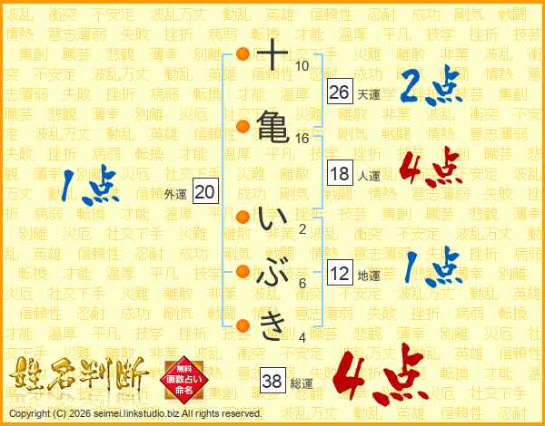 十(10画)亀(16画) い(2画)ぶ(6画)き(4画)