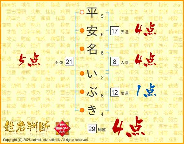 平安名いぶきさんの総運は29画の4点!