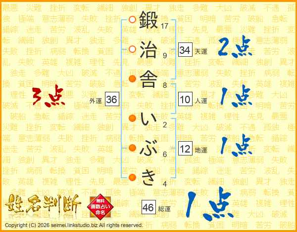 鍛治舎いぶきさんの総運は46画の1点!