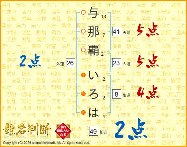 与那覇いろはさんの総運は49画の2点!