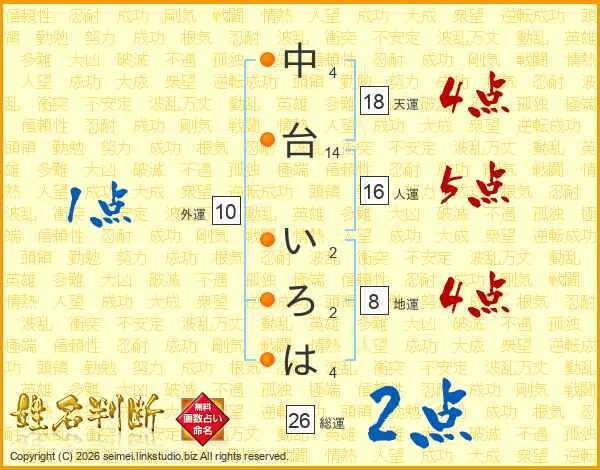 中台いろはさんの総運は26画の2点!