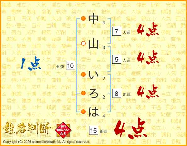 中山いろはさんの総運は15画の4点!