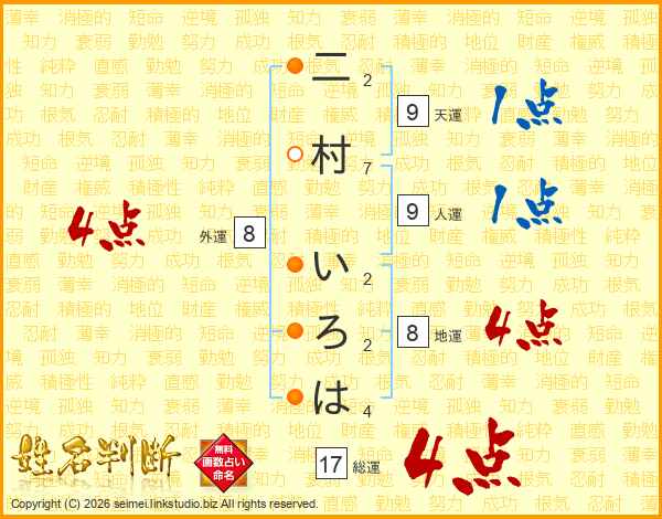 二村いろはさんの総運は17画の4点!