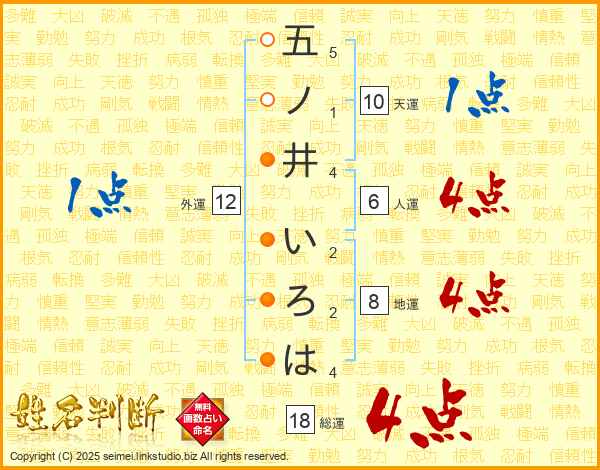 五ノ井いろはさんの総運は18画の4点!