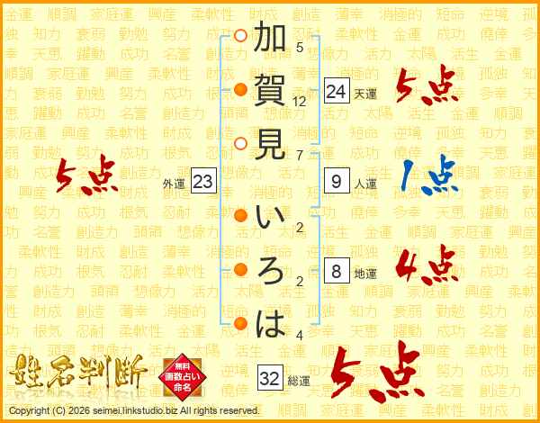 加賀見いろはさんの総運は32画の5点!