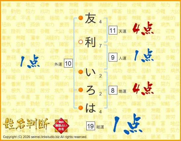 友(4画)利(7画) い(2画)ろ(2画)は(4画)