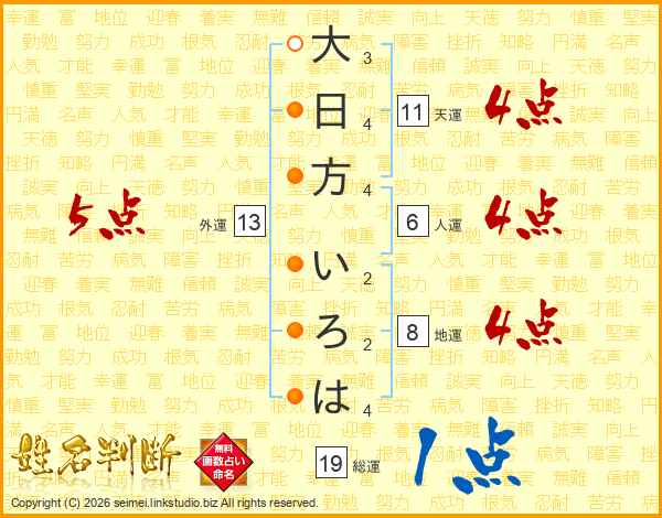 大日方いろはさんの総運は19画の1点!