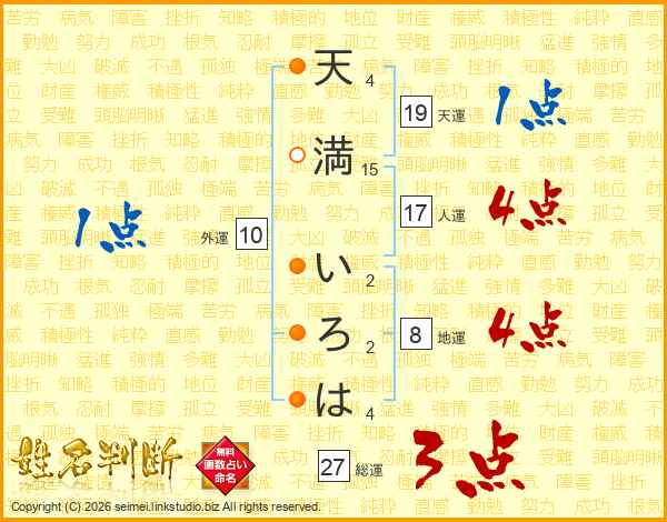 天(4画)満(15画) い(2画)ろ(2画)は(4画)