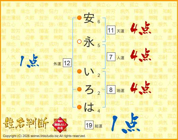 安永いろはさんの天運は11画の4点!