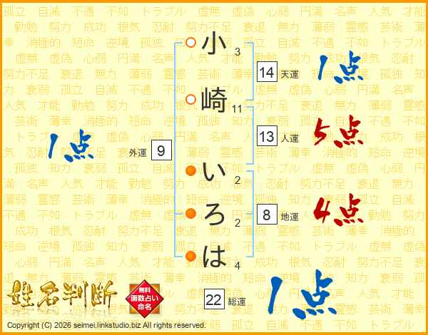 小崎いろはさんの人運は13画の5点!