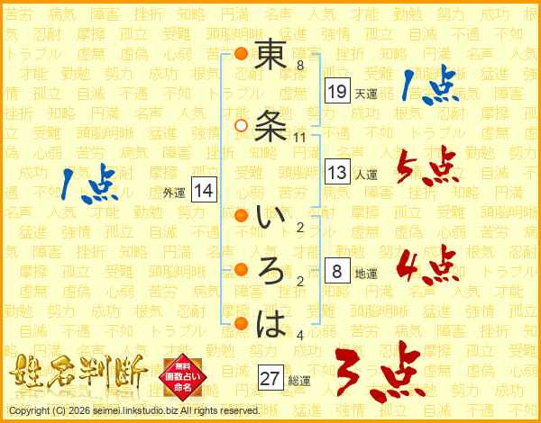 東条いろはさんの天運は19画の1点!