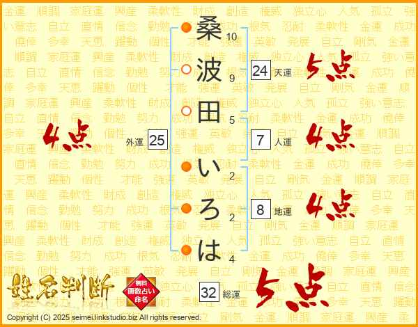 桑(10画)波(9画)田(5画) い(2画)ろ(2画)は(4画)