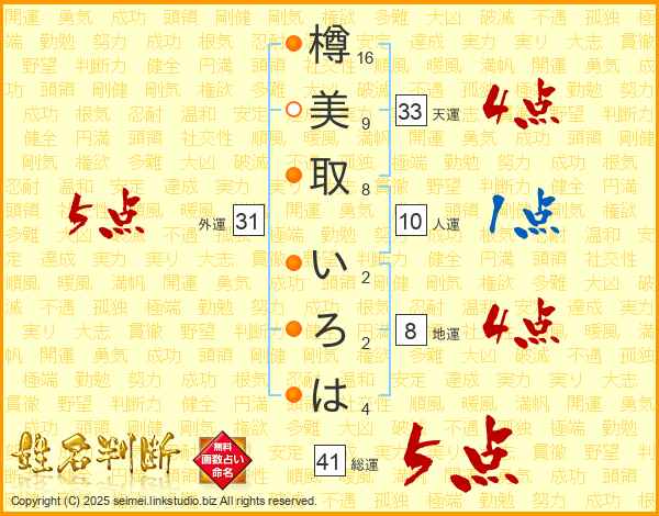 樽(16画)美(9画)取(8画) い(2画)ろ(2画)は(4画)