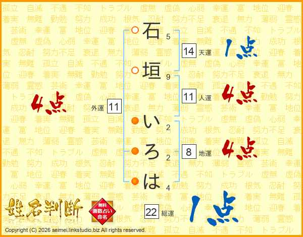 石垣いろはさんの総運は22画の1点!