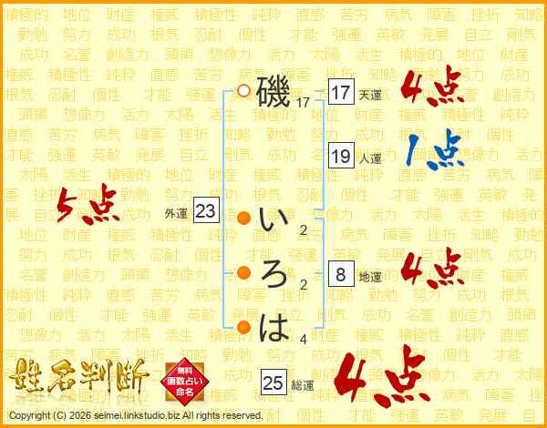 磯いろはさんの総運は25画の4点!