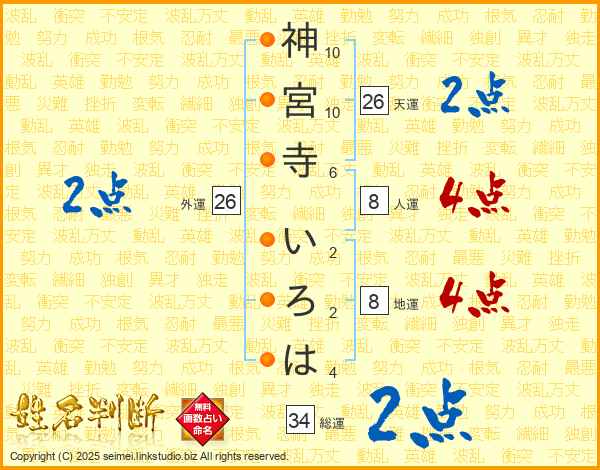 神宮寺いろはさんの総運は34画の2点!
