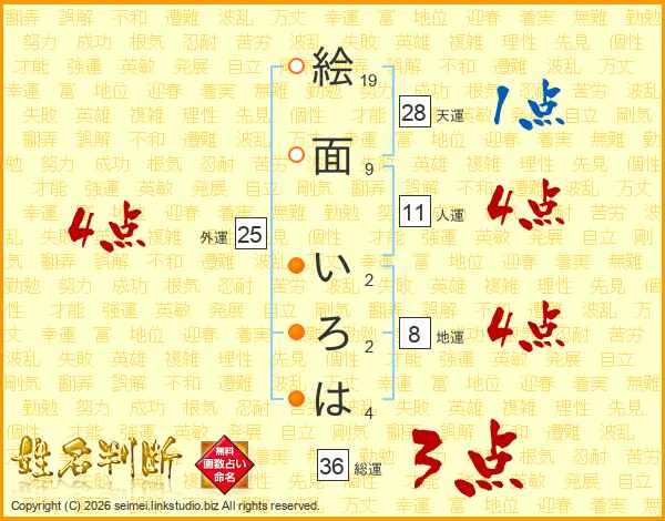 絵面いろはさんの総運は36画の3点!