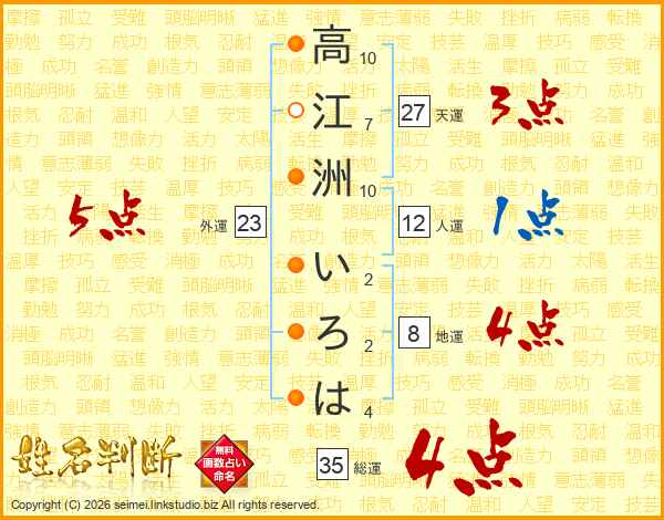 高江洲いろはさんの総運は35画の4点!
