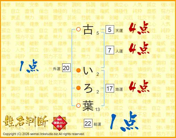 古いろ葉さんの地運は17画の4点!