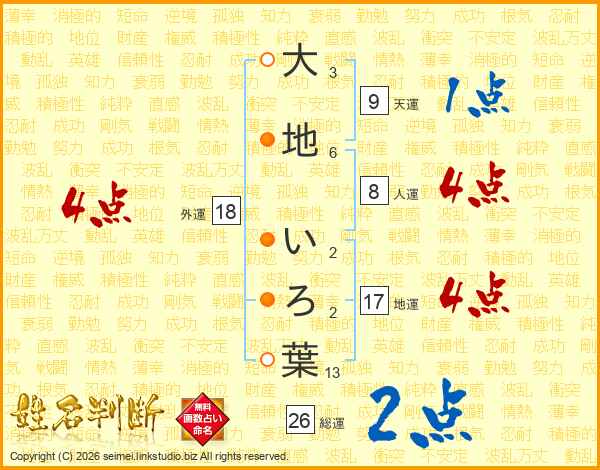 大地いろ葉さんの総運は26画の2点!