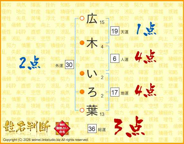 広木いろ葉さんの総運は36画の3点!