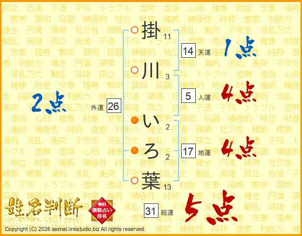 掛川いろ葉さんの総運は31画の5点!