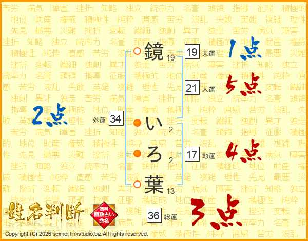 鏡(19画) い(2画)ろ(2画)葉(13画)