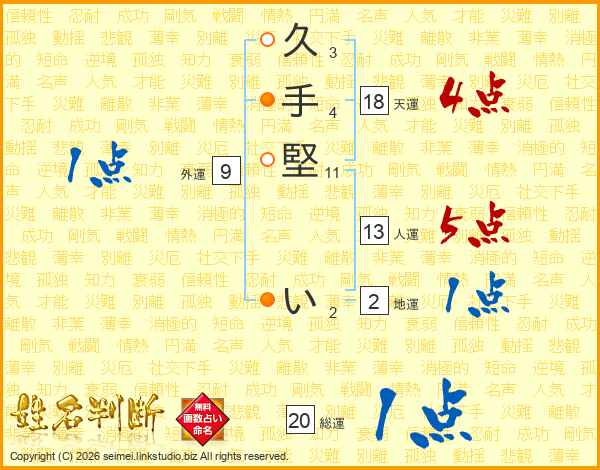 久手堅いさんの天運は18画の4点!