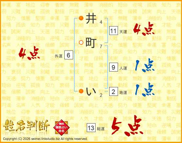 井町いさんの総運は13画の5点!