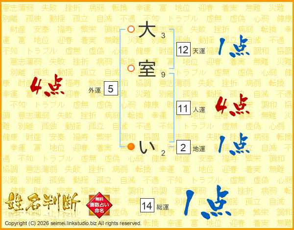大室いさんの総運は14画の1点!
