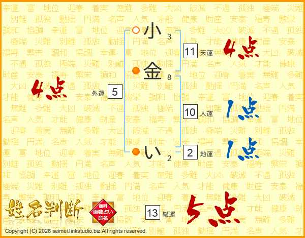 小金いさんの総運は13画の5点!
