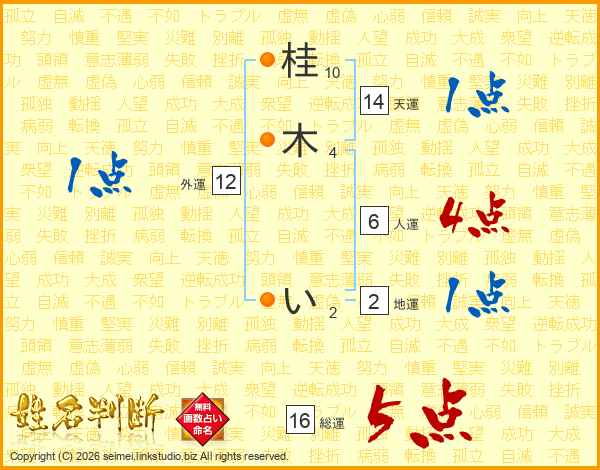 桂木いさんの総運は16画の5点!