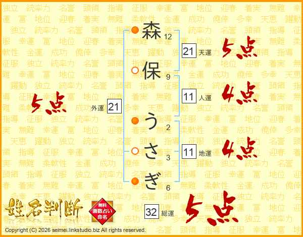 森保うさぎさんの総運は32画の5点!