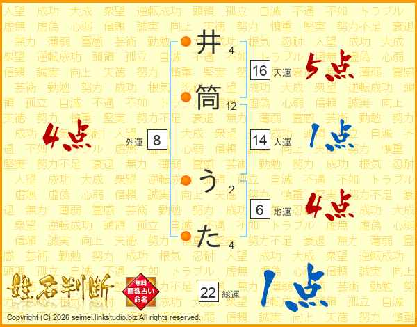 井筒うたさんの天運は16画の5点!