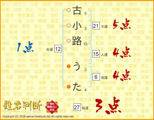 古小路うたさんの総運は27画の3点!