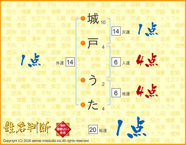 城戸うたさんの天運は14画の1点!
