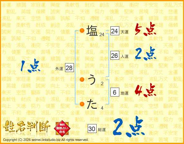 塩うたさんの人運は26画の2点!