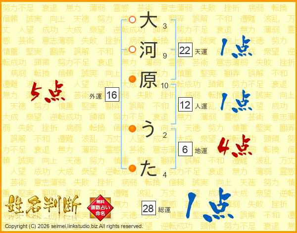 大河原うたさんの総運は28画の1点!